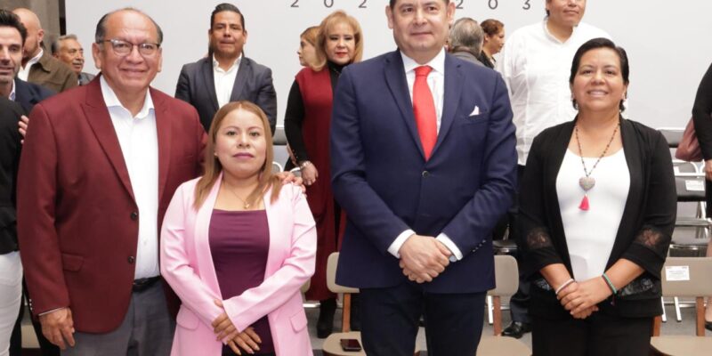 Puebla, Pue.- Javier Aquino Limón, Secretario de Bienestar; Ana Laura Altamirano Pérez, Secretaria de Desarrollo Rural; Samuel Aguilar Pala, Secretario de Gobernación; y Apolinaria Martínez Arroyo, Instituto Poblano de los Pueblos Indígenas, son los primeros cuatro nombramientos del gabinete que dio a conocer el gobernador electo Alejandro Armenta.