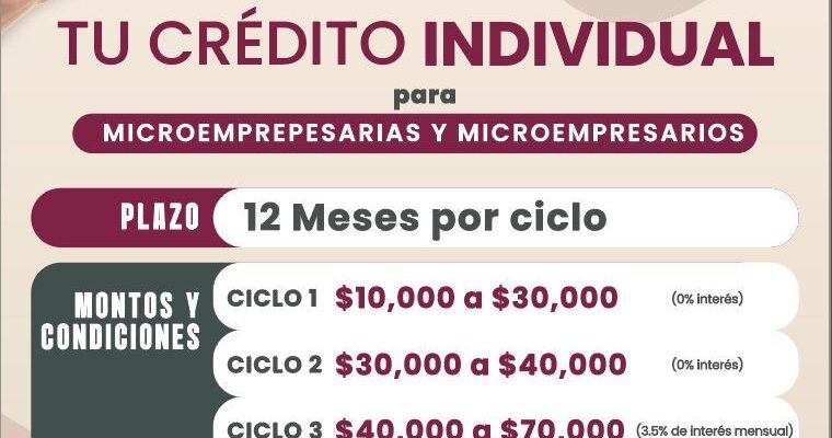 Sobre la modalidad de Tu Crédito Individual, continuó, está dirigido a personas que cuenten con un negocio establecido operando en el municipio de Puebla por al menos un año, con buen historial crediticio y la misma edad, para solicitar préstamos de entre 10 mil pesos y 70 mil pesos en tres ciclos consecutivos, con tasas de interés de entre cero y uno preferencial de máximo, 3.5 por ciento.
