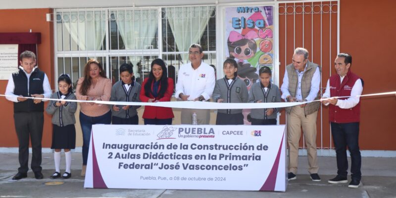 CIUDAD DE PUEBLA, Pue.- De la mano de las madres y padres de familia, así como de maestras y maestros, el gobierno estatal construye el futuro de las siguientes generaciones en Puebla, sentenció el gobernador Sergio Salomón al inaugurar la construcción y rehabilitación de espacios educativos de la Escuela Primaria Federal “José Vasconcelos”.