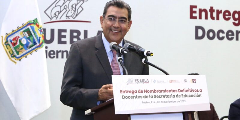 CIUDAD DE PUEBLA, Pue. – Con la entrega de mil 484 nombramientos definitivos, el gobierno de Puebla reconoce a las y los docentes y brinda certeza laboral a este sector para que participen en los distintos procesos de desarrollo profesional, manifestó el gobernador Sergio Salomón al presidir el otorgamiento de dichos documentos en el Centro Expositor.