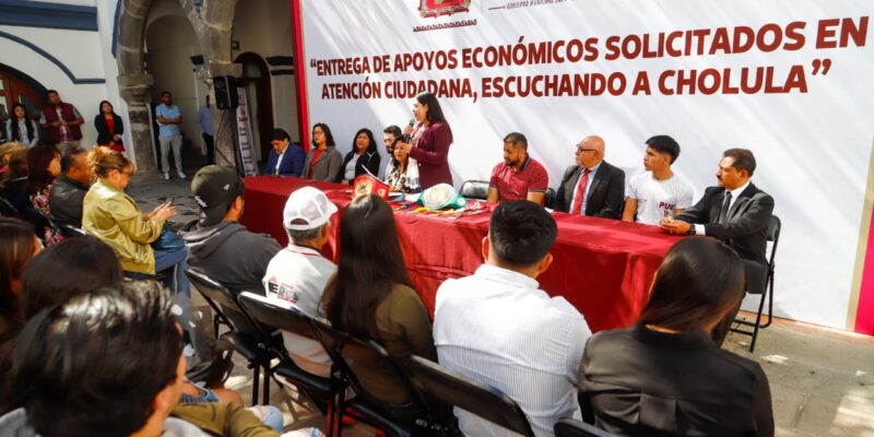 San Pedro Cholula, Pue.- Con el firme compromiso de mantener una administración cercana a la ciudadanía, el Gobierno Municipal de San Pedro Cholula, encabezado por la presidenta Tonantzin Fernández, llevó a cabo la entrega de apoyos económicos a ciudadanos que lo solicitaron a través de Atención Ciudadana en los Miércoles Ciudadanos “Escuchando a Cholula”.