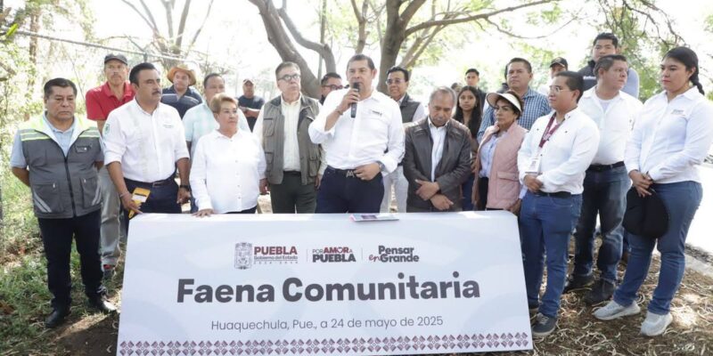 HUAQUECHULA, Pue.- “El gobernador y los presidentes municipales, no deben actuar como emperadores ni virreyes. Somos iguales, gobernar implica trabajar con la gente, no por encima de ella”, así lo reiteró el mandatario Alejandro Armenta, al encabezar la Faena No. 21 junto con habitantes del municipio.