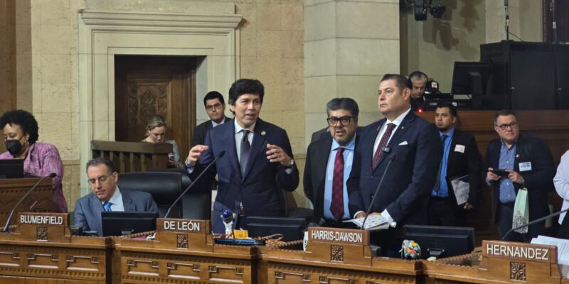 Los Ángeles, California. Durante una ceremonia solemne en el City Hall de Los Ángeles, centro de gobierno de la ciudad y sede de las oficinas del alcalde y los concejales, el gobernador electo de Puebla, Alejandro Armenta, fue reconocido como invitado de honor a propuesta del concejal Kevin de León, quien ha mostrado un fuerte apoyo a la comunidad migrante.