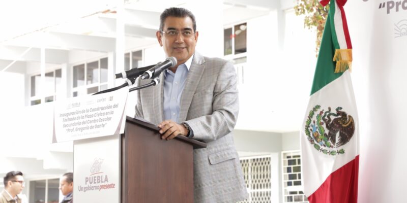 El gobernador Sergio Salomón presidió la inauguración del techado de la plaza cívica en la secundaria del Centro Escolar “Prof. Gregorio de Gante”