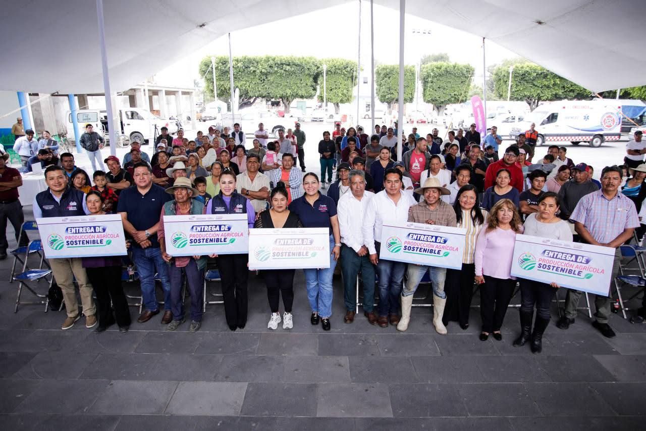San Andrés Cholula, Puebla. – Con el objetivo de incentivar la producción local y promover sistemas productivos eficientes, así como fortalecer el cultivo de alimentos frescos y nutritivos, la presidenta municipal entregó 50 unidades del programa “Producción Agrícola Sostenible”, en la junta auxiliar de San Luis Tehuiloyocan.