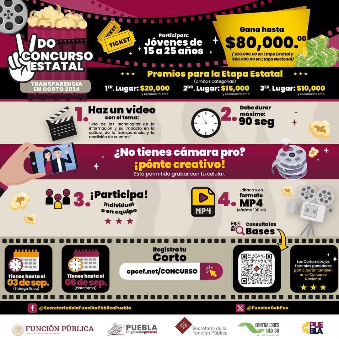 Municipios GOBIERNO MUNICIPAL DE AMOZOC PUEBLA INFORMA Por Redacción 24 julio, 2024148 bbb CompartirTweet 0 Te invitamos a participar en el 2o. Concurso Estatal de Transparencia en Corto. Los cortometrajes ganadores participan también en el Concurso Nacional.