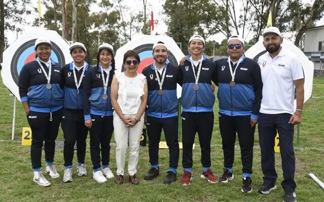 La Rectora María Lilia Cedillo Ramírez asistió a la ceremonia de premiación de tiro con arco de la Universiada Nacional 2025, en la que la delegación de Lobos BUAP se posicionó en los primeros lugares del medallero: plata y bronce por equipos femenil y varonil, respectivamente.