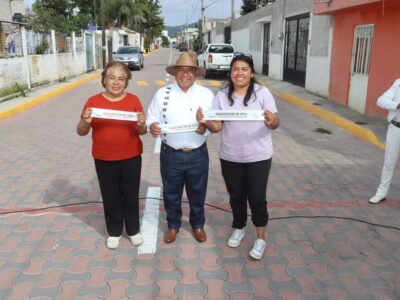 Amozoc de Mota.- El Presidente Municipal Severiano de la Rosa Romero inaugura pavimentación con concreto hidráulico en la calle 2 Poniente, beneficiando a ...