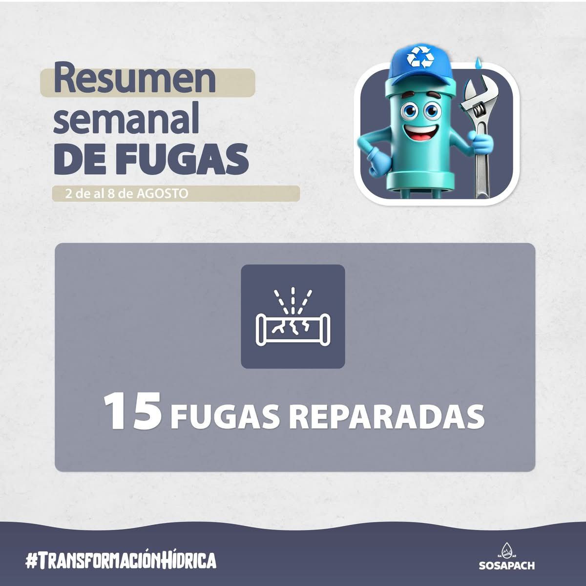En la semana del 2 al 8 de agosto, nuestro equipo operativo, llevó a cabo la reparación de 15 fugas en distintos puntos ...