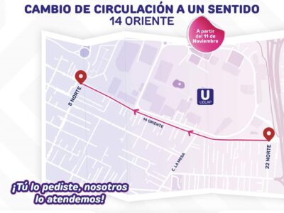 INFORMA AYUNTAMIENTO DE SAN ANDRÉS CHOLULA CAMBIO DE CIRCULACIÓN A UN SÓLO SENTIDO EN 14 ORIENTE