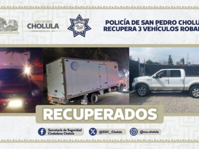 POLICÍA DE SAN PEDRO CHOLULA RECUPERA 3 VEHÍCULOS ROBADOS