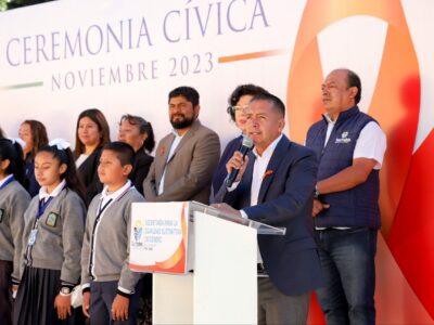 San Andrés Cholula, Puebla.- El presidente municipal, Mundo Tlatehui, encabezó la ceremonia cívica correspondiente al mes de noviembre que organizó la Secretaría para ...