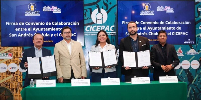San Andrés Cholula, Puebla. – Con el propósito de fortalecer la asesoría, capacitación y acompañamiento técnico en materia de infraestructura y desarrollo urbano, la presidenta municipal, Lupita Cuautle Torres, firmó un convenio de colaboración con el Colegio de Ingenieros Civiles del Estado de Puebla A.C. (CICEPAC).