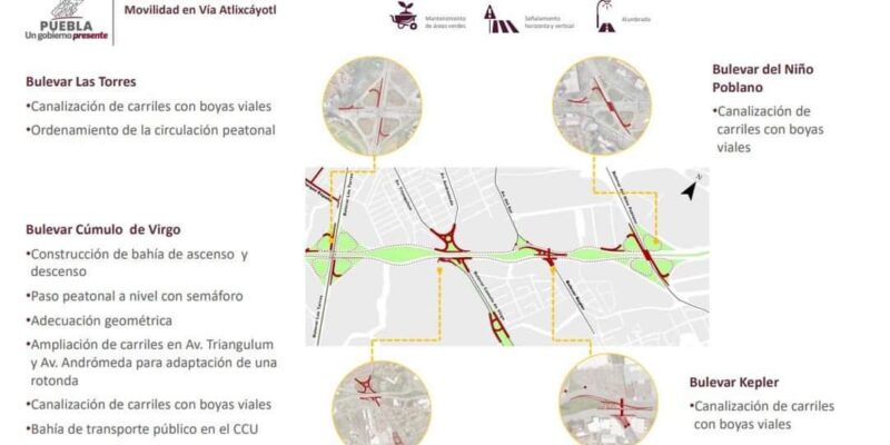 | Se cerrarán permanentemente los retornos a la izquierda en la Vía Atlixcáyotl, se presentaron distintas propuestas con las que se plantea que se tenga un distribuidor vial, mantenimiento de la infraestructura y de paradas de autobús, por el momento seguirán abiertos los cruces de San Martinito y La Vista.